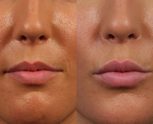 Beautiful lips have curves, like the rest of the body, and have a youthful suppleness. The center of the upper lip, called the cupid’s bow, dips down between the two vertical columns that extend upward to the nostrils. The lower lip appears to have two round pillows that don’t quite meet in the middle. Natural-looking lip enhancement procedures add fullness but maintain these features and proportions. Lip fillers can also highlight the most striking aspects of the lip shape, providing a true enhancement of inherent beauty.