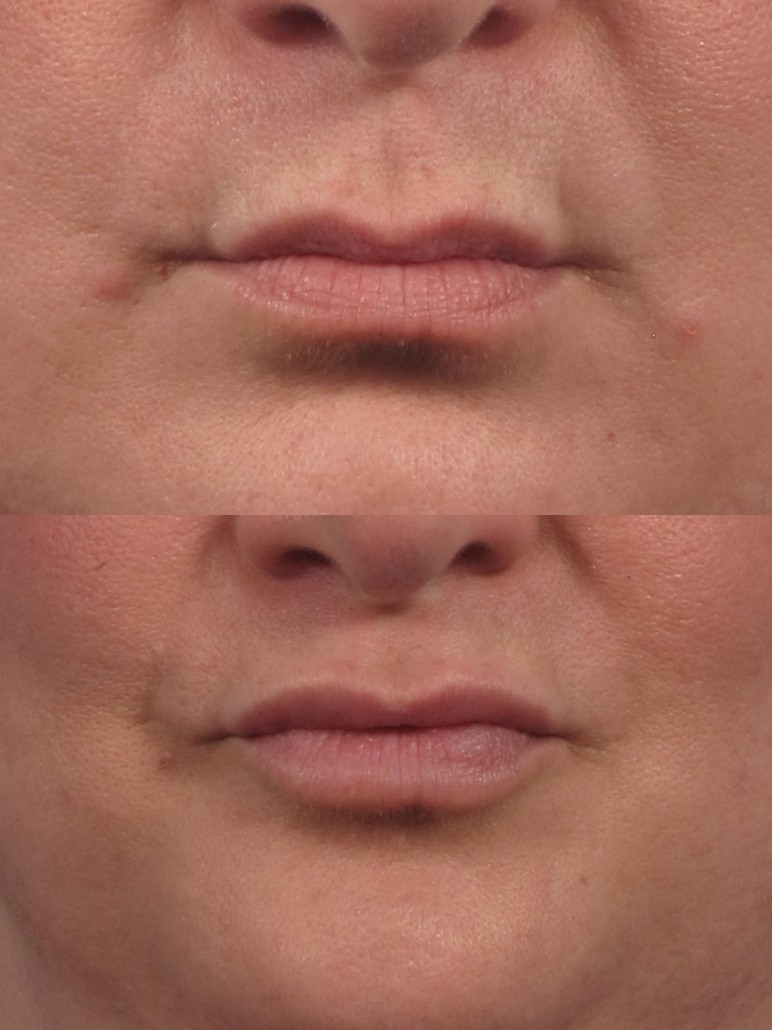 Fat injections are another means of plumping the lips, with long-lasting results but somewhat less predictability than fillers. Fat injections in the upper face (cheeks, under-eyes, temples) have more reliable results, most likely because of the relative lack of movement in those areas.